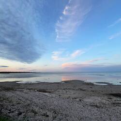 Um uns ein wenig die Beine zu vertreten und das tolle Wetter zu genießen, suchten wir uns einen Ort zum Spazierengehen – und wurden mit einem wunderschönen Strand belohnt. Zur Feier des Tages gab’s anschließend Geburtstagstorte – ganz entspannt im Sonnenschein auf dem Parkplatz.