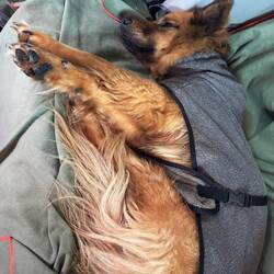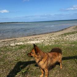 Nanuka hat sich ebenfalls sofort wieder wohlgefühlt – sie hat es sichtlich genossen, frei im Gras zu liegen, am Sandstrand mit dem Ball zu spielen und ihre Pfoten im kühlen Wasser der Nordsee zu erfrischen 🐶