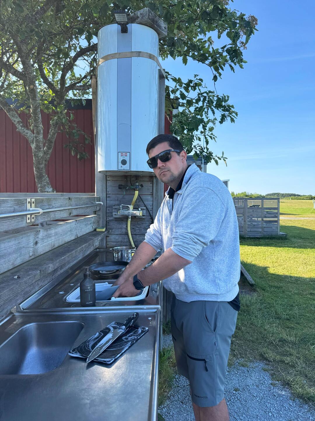 Einige Berge an Geschirr mussten mit heißem Wasser gereinigt werden, und die Waschmaschine lief auch.