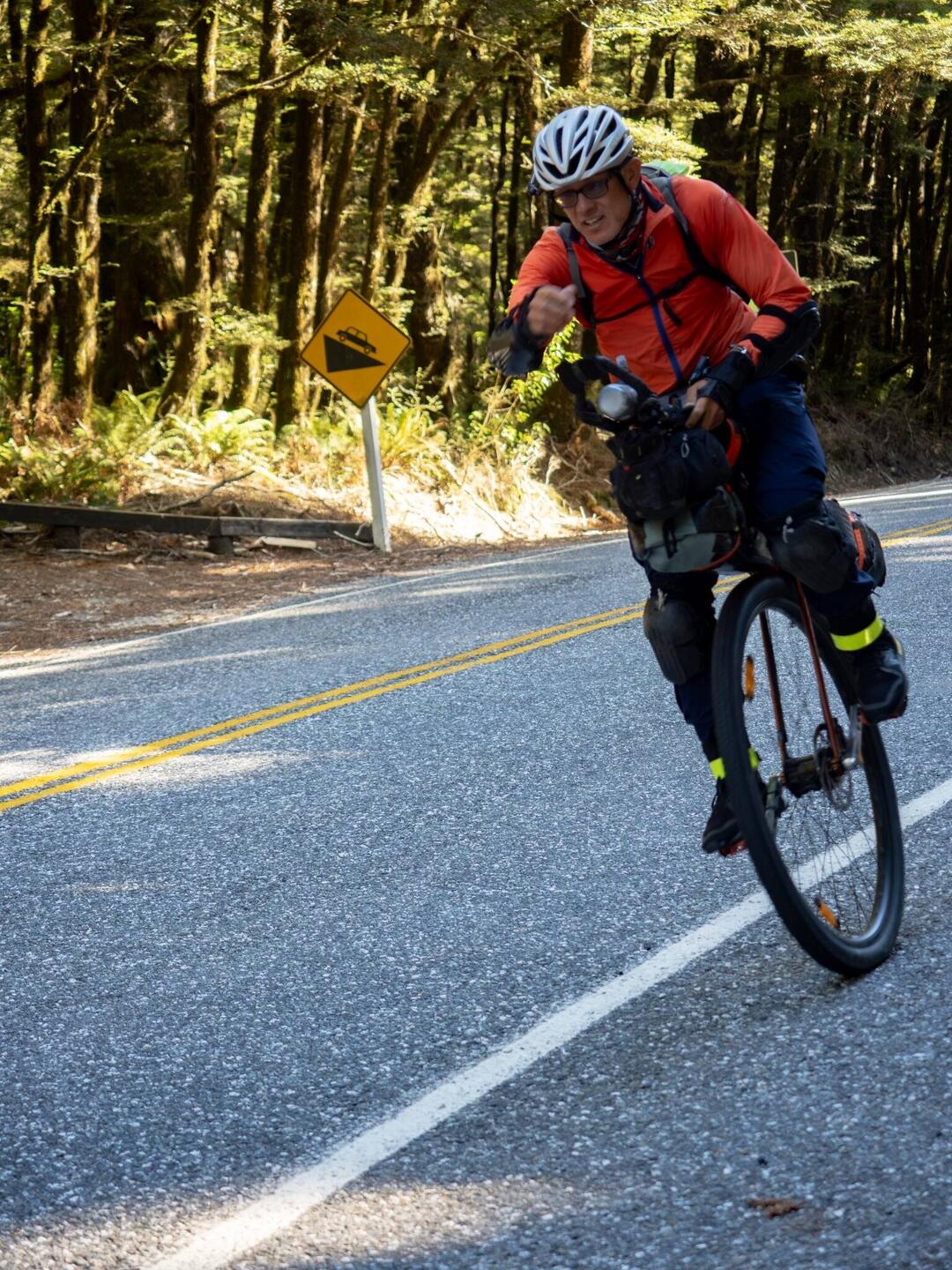 Long steep climb - Walked unicycle most of second switchback