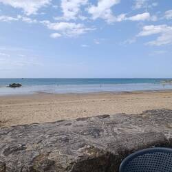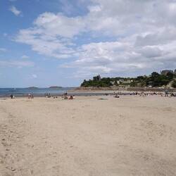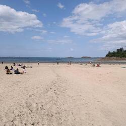 Strandtag mit Radltour nach Dinard. Wir sind auf dem Campingplatz Longchamp in St. Lunaire. So ein schöner Strand. Und Villen am Meer, da bleibt einem die Spucke weg.
