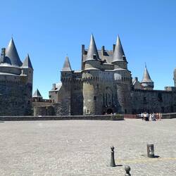 Heute haben wir eine 1000jährige Eiche besucht, Vitré angeschaut und campen jetzt auf dem Schloss. Chateau de Chanteloup bei Le Mans.