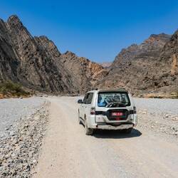 V tem hribovitem delu gorovja Al Hajar nam ne deluje najbolje občutek za dolžino in višino, no višino občutimo po tem, da ja čez dan malo manj vroče. Vožnje kar ni bilo konec, cesta je bila ok, asfalt, malo makedama, lepo speljana, vendar smo do Al Khitayma, izodišča za pohod, potrebovali 3 ure in pol in naredili cca. 240 km 🙃. Pred izhodiščem je zopet široka planota, kjer so že zgradili kar nekaj luksuznih resortov in butičnih glampingov, saj se ne čudim, ker večina turistov, ki jih srečujemo so bolj " butičnega, hotelskega" tipa, v lepih, svetlih cunjcah in lepih šolenčkih, športna obutev je redka.