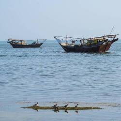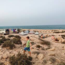 Po nakupu živeža in menjavi denarja, smo jo krenili proti morju. Mohor nas je želel peljati na peščeno plažo Yiti beach, ki so jo pa žal zaprli, ker gradijo Trump golf resort🤨 Za kopanje in spanje smo našli zaliv s plažo Bandar Al Khairan. Morje je bilo mirno, sicer pa popoldan in zvečer polno obisovalcev, džipov s čolni in vodnimi, skuterji, nič kaj mirno, kljub zelo strmemu dostopu. Področje sicer z razčlenjeno obalo otočki spominja na male fjorde. V morju pa kar nekaj pisanih koralnih ribic, od nemotov, zastavic, trobent, ježkov z zelo dolgimi bodicami. Šotore smo postavili na plaži, skuhali okusne makarone in kmalu šli v mižule. Stemni se že okoli 18ih. Noč je bila kar zanimiva, najprej so nas prebujali glasni in zelo zgovorni domačini, ki se pridejo zvečer družit na plažo, potem pa še Katja in Mohor, ki sta se za las umaknila visoki plimi in tako preprečila, da bi prvo noč imela plavajočo hišico na vodi 😆😆😆Read more