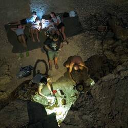 Šotore smo postavili na klifu nad eno peščeno plažo, ki je imela več kot 10 izkopanih lukenj in polno sledi od želv. Že kmalu, ko se je stemnilo smo s klifa opazili eno, ki je kopala luknjo. Počakali smo še slabe 2 uri, preden smo šli bližje pogledat, če že vali jajca. Takoj pod klifom smo opazili še eno, ki je kopala luknjo. Kljub pazljivosti in ne uporabi svetilke (sicer uporabljaš lahko le rdečo), smo kasneje opazili, da sta zapustili plažo. Želve so zelo občutljive vse do momenta, ko začnejo odlagati jajca. Ker nismo želeli še kakšne preplašiti, smo se odpravili spat z upanjem, da zjutraj ujamemo kako zamudnico.Read more