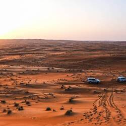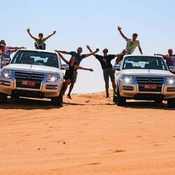 Pred vožnjo v puščavo je obvezno treba napolniti tank in spustiti gume, to ti naredijo tudi na petrol postaji. S spuščenimi gumami se lažje vozi po puščavskem pesku in manj možnosti, da se zakoplješ. Obvezen je 4×4 terenec z diferencialom zapore in reduktorjem.