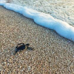 Res smo bili hvaležni za te simpatične prizore in nepozabno izkušnjo. Iz mivke je prilezlo vsega skupaj okoli 20 malih, fletnih želvic in vse so jo kar se da hitro krenile proti morju. Ker so jih pri tem dodatno ovirale naše stopinje, smo nekaterim pomagali, drugim pa smo zravnali mivko, da se nise prevračale. Ko dosežejo morje, pot še ni zaključena, nemalokrat jih močni val odnese nazaj proti obali in morajo spet hiteti pred plenilci, pa tudi ko so že v morju,še kašno ujame galeb. Tokrat so galebi zaradi naše prisotnosti ostali brez zajtrka, vsaj na kopnem. Res lepo, zapisano v spomin za vedno!