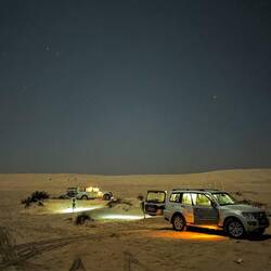 Siti smo se podali v iskanje t.i. "omanskih Maldivov, katere je Katja našla na googlu, da so v bližini. Z glavne ceste smo zavili na stransko cesto, ki ni bila cesta v pravem pomenu besede, ampak bolj kolovoz, vodil nas je čez ostanke slanega jezera. Pot je zgledala kot bi bila poledenela, podlaga terena pa nekje bela od soli, tam običajno trdnejša, drugje od svetlo do temno rjavih odtenkov, bolj temna barva pomeni bolj mehak teren. Po kar nekaj km smo prispeli do točke, kjer naj bi morje spominjalo na Maldive. Žal je bila precejšnja oseka, zato so bili namesto modrih odtenkov bolj sivo-rjavi, polno smeti in nič kaj prijeten vonj po organskem (ko ostane le mivka brez morja). Hitro smo se odločili,da ne bomo tu spali in da gremo naprej do Bele puščave. Na poti nazaj so nas zmedli kolovozi v različne smeri in smo skrenili s pravega. Od začetka je bil ok, potem pa je postal vse mehkejši teren. Mohor je obrnil,da ne bi zapeljal v mehko slano blato na poti, a je gume podlaga zagrabila in so žal obtičali. Pa se je spet začela akcija "Resevanja vojaka Rayna."Zdaj smo bili že zverzirani, prtljago ven, gume spustit, mal gume odkopat, našli smo dile od enih akcij, ki je tudi potekala tu, potem pa Mohor za volan, ostali potiskat in v 2.poskusu je uspelo-juhuhuu.Vmes je sonce že zašlo in malo se nam je mudilo, da najdemo pot iz tega slano-blatnega področja.Morali smo priti na pot, po kateri smo prišli noter, ampak se je bilo v labirintu sledi gum kar težko znajti, zato je bilo po prestani preižkišnji kar napeto in adrenalinsko, v kontra smer se nam sploh ni zdelo. Se nam je pošteno oddahnilo, ko smo se pripeljali na glavno cesto. Ker je bilo že povsem temno, smo jo potegnilo vse do Bele puščave. Po dobri uri in pol vožje smo zopet rahlo pluli, tokrat po beli mivki ob morju, si našli en fajn prostor za šotore. Na povsem beli mivki, v vznožju belih sipin in v soju močne lune, so šotori zgledali bi bili nekje v Himalaji. Mi smo pa utrujujeni od dolgega in polnega dne kmalu popadali v šotore.Read more