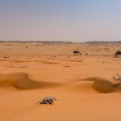 Že po nekaj km vožnje čez ravninski del puščave so se sprehajale kamele, ena celo tako radovedna, da si je skozi odprto okno pobližje pogledal naše sopotnike in jim nekako odobrila nadaljevanje v puščavo. Sem skoraj prepričana, da so jo z nečim podkupili😉