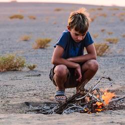 Danes smo vsi vstali malo pred 6-o, saj smo želeli na vrhu sipin pričakati sončni vzhod. Smo se morali kar pognati navzgor, da smo ga ujeli. Ob 6:15 je pokukala žarečo-oranžna kapica izza obzorja, potem pa zelo hitro še preostali del krogle. Počasi je puščavo pobarvalo v tople oranžne odtenke. Uživali smo v prostranih razgledih, vzorcih, ki jih veter in živali rišejo v puščavski pesek, plezanju in skakanju po sipinah ter s tišino obarvani samoti, ki jo je sem ter tja preglasil le navdušeni glas našega Zvonkota 🙂 Svit je v neskončnem peskovniku res užival, več po vseh štirih kot po dveh, od valjanja, kotaljenja, delanja salt, prevalov, presipanja peska z roke v roko, pa je imel mivko čisto povsod. Tek navdol z višjih sipin je tudi posebno doživetje, tečeš lahko na vso moč, saj je vseeno če padeš, kajti vedno padeš na mehko. V senci sipinie smo hiro podrli naše šotore in pozajtrkovali. S hrano ne kompliciramo, važno je da smo siti in zadovoljni. Šotorka nam služi za mizo in stol obenem, od pribora imamo žlice in švicarske nože, vsak eno skodelico za hrano in eno za pijačo, čeprav večinoma pijemo iz plastenk ter eno posodo za kuhat in eno džezvo za kavo. Manjših trgovin s hrano je res veliko in vse so zelo dobro založene, tako da hrano lahko kupuješ sproti.