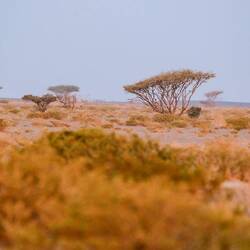 glavne ceste smer Duqem-Sur se nahaja manjša Cinemmon desert (cimetova puščava), ki je ime dobila zaradi posebne oranžno rjave barve, ki jo dobi predvsem od jutranji in večerni svetlobi. Mi smo zagrizli v oranžne sipine ob 12ih, nemogoče je bilo hoditi bos, ker je bil tako vroč pesek.Ta je pa sploh mini varijanta, ampak lepa, ker ima vmes zelene akacije in sive skale in imaš občutek kot bi bil v Afriki (ne vem sicer od kod ta misel, ker v Afriki nihče od nas še ni bil 😉). Smo pa imeli srečo, ker je kar fajn pihalo in smo lahko videli, kako veter nosi pesek in hitro briše sledi.
