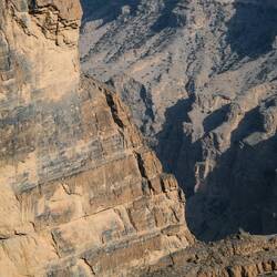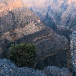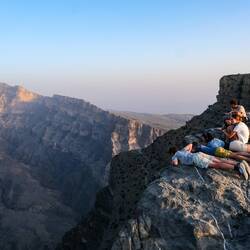 Prebudili smo se v jutro s samo 5 stopinjami. Naše dva fanta ponoči ni nič zeblo, ostale nas pa kar je. Kmalu je posijalo sončece, da nas je malo pogrelo, dodatno nas je pa še čajček. Pred odhodom nazaj v dolino smo šli še z druge strani pogledati in slikati vasico As Saiq, potem pa spust v dolino in proti Jebel Shamsu oz. na Balcony hike z razgledi na Jebel Shams, ki je s 3.009 m n.v. najvišja gora v Omanu in na Arabskem polotoku. Jebel Shams pomeni Gora Sonca, ker je to prvi kraj v Omanu, kjer vzhaja sonce, in ker na njenem vrhu sonce sije skoraj ves dan.
