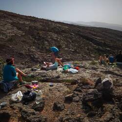 Vstajamo kar s soncem, okoli 6ih, saj je dan kratek, temperature pa se s prihodom sonca pospešeno dvigujejo. Od 11ih do 14ih je vrhunec vročine, od oka, okoli 35, verjetno celo 35+, vendar je suha vročina, tako da ni tako hudo kot se bere. Po 15ih pa je občutek kot je pri nas poleti po 17ih, ob 18ih pa je že tema. Zjutraj in zvečer je kar akcija, vsi sodelujemo pri postavljanju oz. podiranju šotorov in pripravi obrokov, tako se zjutraj hitreje odpravimo dalje, zvečer pa hitrje nafilamo lačne želodčke. Kajti čez dan so bolj hitre malice tako mimograde, saj zaradi vročine in akcije niti ne čutimo hude lahkote.