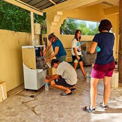 Potem sledi spust po razgibani pokrajini, s cesto vrezano v strm skalnat breg, tik nad kanjonem do Wadi bani Aufa. Noro, kakšni divji odseki in razgledi, kar težko verjameš kje se vije cesta, res divji in težko dostopen konec. Po spustu v dolino prideš do izteka Snake Canyona, imel je dobil, ker kanjon s svojimi okljuki spominja na kačo. Vstopili smo skozi ozko in visoko sotesko, po vodi, ki je segala do pasu. V kanjonu je bila že senca in skozi je fajn vleklo, temperature pa tudi niso več tako visoke, tako da nam je bilo skoraj malo hladno. Malo smo se sprehodili po kanjonu navzgor, vode ni bilo veliko, našli smo en tolmun s soncem, da smo se malo pogreli. Potem smo skuhali še zadnjo " divjo" kočerjo, v lonce smo vrgli preostanek riža, leče in začimbe, skuhali kavo, s Katjo pomili posodo v falaju in ob mraku krenilo naprej, po vse širši dolini do Al Rustaqa. V Al Rusraqu smo si v vrelcu, vročem 65 stopinj umili noge. Prezlje je presenetila infrastruktura, ki so jo zgradili okoli vrelca, spet so ugotovilo da je od "lanskega" leta 2019 vse čisto drugačno. Punce smo kar nekaj minut pešačiti do prostora, ki je namenjen ženskim nečistim nogam. Pa se je izkazalo za simpatično izkušnjo, vse so nas hodile gledati, se nam.smejale, ker nam je bila res vroča voda in nas slikale. Tu so ženske odkrite, nekatere se celo povsem slečejo in umijejo z vročo vodo, vse pa razposajene, vesele, klepetave, firbčne...V glavnem ženske kot ženske, ampak to je bilo prvič, da smo se jim v Omanu približale, ker drugače jih sploh ni videti, mogoče vidiš kakšno v avtu, na ulici pa redko. Proti Muškatu se je kmalu začela 4 pasovnica, prometa je bilo kar precej, ker je petek, njihova nedelja. Prespali smo.v istem guesthousu, kot prvo noč, saj je nekaj minut od marine, od koder imamo zjutraj izlet s snorklanjem.Read more