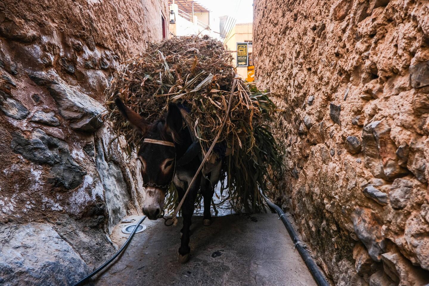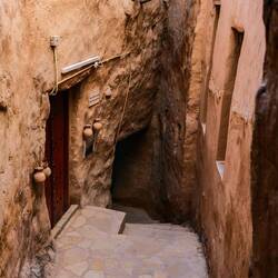 Vasica Misfat Al Abriyeen, nad katero smo spali, me je povsem prevzela. Ima en poseben, simpatičen vibe. Ozke ulice, viskoke hiše, grajene z kamna, slame in malte, pisana vrata, vse diši po kadilu, na strehah luštni kafiči, restavracije (ta del me je spominjalo na Maroko), pod vasjo pa nežno žuborenje prepletenega sistema falajev in vse zeleno od bujnega rastja bananovcev, datelnjevih palm, papaj ... čez vse pa je bilo čutiti en tak spokojen mir. Tu bi se pa kamot malo dlje zataknila🙂 Sem si vzela nekaj minut za zvočno kopel med zelenimi terasami in aromatično zgubljanje med uličicami.