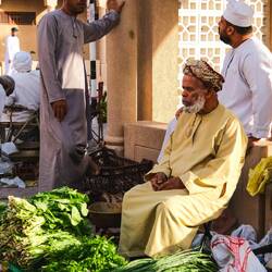 Sicer je Muškat precej razpotegnjeno mesto, cca. 60 km ob obali Omanskega zaliva. Ni klasično “kompaktno” mesto, ampak niz več četrti, razporejenih vzdolž morja in med hribi. Stavbe belih in svetlih odtenkov, ljudi na ulicah ni videti veliko, pretežno moški v enostavnih, dolgih, belih oblekah, imenovanih dishdash in pokrivalih na vrhu glave. Vse deluje precej umirjeno, tudi v trgovskem centru nobene gužve, res mirno, edino garaža povsem polna velikih avtomobilov.