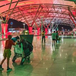 Muškat je zelo razpotegnjeno mesto, tako od enega do drugega konca kljub tri-štiripasovnici rabiš kar nekaj časa. Zaprašene avte smo pripeljali ob 22:01, kilometrov smo naredili cca. 2.500, za ene 50 km nam je še ostalo limita🙂 S taksijem in enim od pajerotov so nas z agencije dostavili do letališča. Vse je potekalo tekoče, umirjeno in brez težave, tako kot samo potovanje.