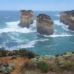 Nach einer schrecklich lauten Nacht, haben wir heute begonnen die Great Ocean Road zu erkunden......ein Traum! Was für ein Spektakel, überirdisch schön, gigantisch, pittoresk......eine LandschaftLäs mer