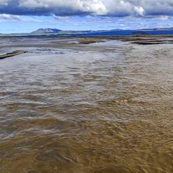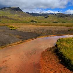 Während der Weiterfahrt auf der Ringstraße durchfährt man eine schöne Sandurflächen und blickt linksseitig auf eine Steilkante und kleinere Wasserfälle.