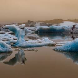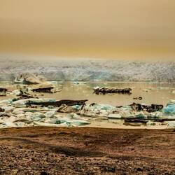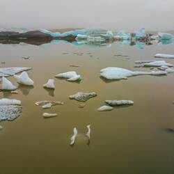 Am Fjallsárlón-Gletschersee traf ich am Abend auf eine Lichtstimmung und Gesamtatmosphäre, die ich nie vergessen werde: der Regen hörte auf und Nebelschwaden legten sich über den See. DieLäs mer