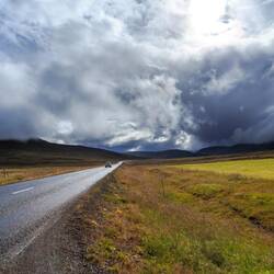 Über Blönduós geht es zurück Richtung Osten. Über die Road 74 zweige ich ab in Richtung der Nordfjorde. Wetterkopriolen auf dem Weg zum Skagafjörður.