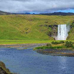 Während der Weiterfahrt auf der Ringstraße durchfährt man eine schöne Sandurflächen und blickt linksseitig auf eine Steilkante und kleinere Wasserfälle.