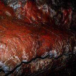 Einstieg in die Rauðfeldsgjá-Felsspalte, aus der ein Bach austritt.