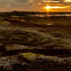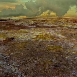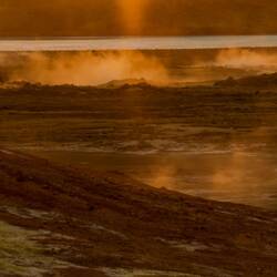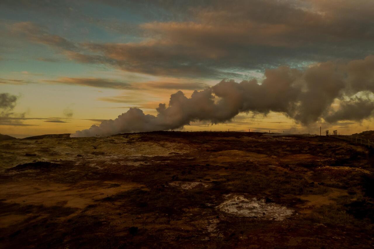 Zischende Thermalquellen Gunnuhver zum Sonnenuntergang.