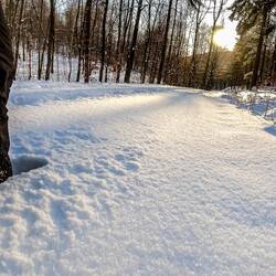 Der Aufstieg zum Süntelkamm im Tiefschnee ist entsprechend anstrengend.