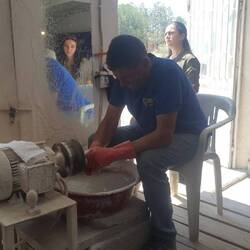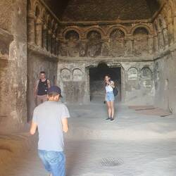 I finally heard my alarm this morning and with that our day started nice and early... We woke up early, for sunrise and went to the viewing point to go and see the hot air balloons. It's really something one cannot explain in words and it felt like we were living in a movie! We then went back to the hotel, had some breakfast and then the tourbus came to pick us up. We had a nice and full tour and saw a lot of different things. Our first stop was at Imagination Valley, were the boulders looks like a lot of different things. The most significant one, like a camel. From there we went to the Outdoor Museum, which also contains a church in one of the boulders. Unfortunately one is not allowed to take any photos of the church or inside of the church. The guy working there was very strict and makes me think of someone in the Mafia. It's quite an experience to see how the people changed these boulders, which is more like sand, into a living space. Next we went to the Monk Valley, were the Monks used to live, also in caves/boulders. Damian climbed into one of the houses, but I decided it's safer for me to stay outside and take a photo or two. The ice cream guy was full of jokes and just before we left, he grabbed my hand and put a cone ring on it... We then went to the Onyx and Souvenir shop. There they showed us how they cut and polish the Onyx, quite interesting! They also sell a lot of jewellery there. We quickly stopped for lunch after that, that was also in a cave. We then went to the Pottery place, where they showed us how they make all the plates, bowls and so out of clay. Very impressive! We ended of the tour at the Panoramic View, where one could take photos. It was a very nice day, but extremely hot, seeing that the aircon of the bus didn't work... After they dropped us at the hotel, we quickly went for dinner and then hopped into bed, as we have a VERY early morning tomorrow!
