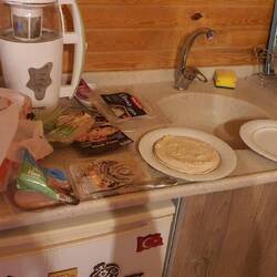 Today we had a very chilled day. All of the tours we wanted to book was fully booked and we then decided that we will spend the next two nights here as well, to do everything we want. We will be doing the Red tour tomorrow and then the Air balloon and Green tour the day after. We accidentally slept through our alarm to go and see the Air balloons this morning, so we will try again tomorrow morning! So we slept in and then had a real Turkish breakfast. It's AMAZING! They have all of these little foods, pastries, spreads and stuff that they pack out for you on your table and then you have your own little food festival. We quickly went to the Mall afterwards and then we drove around, doing some sightseeing. The caves and places are not something one can describe in words. It's incredible! Everyone here is super friendly and you can manage quite nicely with Google Translate and pictures when you don't understand each other. The lady at the cave hotel is also very nice and she's so helpful with all the bookings and arrangements. Seeing that our day wasn't that interesting, I decided that I will name a few things that's interesting to me... Everything is so cheap here. Tonight we had dinner for R250. This included the following: 1 Coke, 1 Very disturbingly bad juice (I didn't know what I ordered and turns out it was black carrot root juice, it was disgusting!), 1 Soup with bread, two full meals and 4 bottles of water. We ate in the mall and I think it's like a type of fast food place. When your food arrives, they also come around with boiling fat/oil (I'm not 100% sure what it is) and throw some over your food. You can taste the cholesterol, but it's still nice. The Turkish people loves meat, bread and cheese and that's obviously amazing to us... Alcohol is very very expensive here. Everyone looks after the stray cats and dogs. There's food, water and milk placed all over for them. The dogs are also super chilled. They don't bark at anyone and they just walk around and lay around where they want to. The stray dogs here are a lot bigger than the one's in we get in South Africa. We also saw the cutest puppy today and ended up giving it water. They drive on the right side of the road and of course that means that the steering wheel is situated on the left side. It's a daily thing for us to go to the wrong side of the car, laugh and then walk around to the right side. It's quite confusing! It's not only the food that's cheap, but also the clothes and electrical equipment. It's quite a problem, because with these prices, one just want to buy, buy and BUY! A lot of their roads, especially in Istanbul, are paved with small square rocks and it makes A LOT of noise trying to get your bag over it! They also have great network coverage. You don't struggle to signal anywhere, except for our cave that we live in at this stage. This is also the reason behind my late Penguins, eventhough I actually write them on the correct day. That will be all from our side for today...