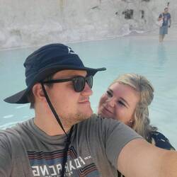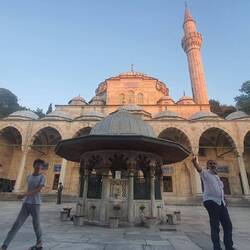 The people here start their day quite early and make a lot of noise. Atleast we had some time to stay in bed a bit later. After we finished preparing for the day, we went to the Grand Bazaar. It is one of the biggest and oldest underroof markets in the world. On our way there we stopped for a quick "breakfast". The food here are very meat oriented and we love every second of it. We then scrolled through the Bazaar for quite some time, it's got thousands of little shops, with the most beautiful things in it... After that, we went back to the hotel to cool down and take a quick nap. When we finished our nap, we went on a hunt for a hairdresser and I cut out a lot of my hair. The guy who did it, was very nice. He threw my hair very dramatically as he cut it and afterwards informed me that he feels very relaxed now. Shame, he tried to brush out all of my knots... From there we went to the Blue Mosque, but it's currently under construction and we could barely see anything. Oh my word, a whole building full of people taking of their shoes, can be stinky stink! We discovered the Arasta Bazaar and scrolled through there. There was this cute little shop where you can dress up and they have a mini photo session with you. The lady taking the photos are quite on it. We then went to a Hookah restaurant, drank some Turkish tea and smoked a traditional Hookah. It's impressive when they bring it to you and the "flavor" consists of a whole pineapple! Afterwards we went to a rooftop restaurant and had the amazing view of the Turkish Asia across the water with all its lights. We ordered a dish that they cook in a claypot and then break it open for you to enjoy. We finished off the night at Hagia Sophia Mosque, thinking it will be quite. The complete opposite. It's very impressive. We finished the night by scrolling past a wayer feature with lights and everything. As we walked back, after 23:00, we realised that these people never sleeps. They also do cleaning of the streets, as well as pick up the garbage bag at this time. We are going to have a fantastic sleepy time now...