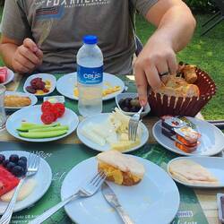 Ons was vroeg uit die vere, aangesien ons 8 uur by die Toergids plek moes wees. Half 8 sit ons toe nou gereed in hulle venstertjie en wag... En wag... En wag... Teen kwart voor 9 kom daar 'n vroutjie en sluit die plek oop. Hulle het nie kommunikasie met mekaar gehad nie, sy het nie geweet ons moes gaan toer nie en het toe nou 'n paar oproepe gemaak en 'n rukkie later hop ons op ons bus. Albei van ons nog lekker moeg, slaap ons terwyl al die ander mense opgelaai word en Damian hoor iemand Afrikaans praat. Hy dink dis seker sy drome en slaap verder... By die boot aangekom, gaan sit ons toe nou en wag weer om te vertrek, die Turke is nogal tydsaam. Ons beoog 'n oom en tannie en besluit ons dink hulle is Afrikaans en van Suid-Afrika af. Toe ons uiteindelik begin beweeg, vertel die vroutjie oor die mikrofoon vir ons klomp interessanthede soos ons verby die geboue ry en daar kom mense met 'n pappegaai verby om mee foto's te neem. Ons het twee eilande besoek. Toe ons by die eerste een kom, is ons toergids sommer weg. Hier dog ons ons kry 'n begeleide toer van die eiland, maar toe nou nie. Ons gesels toe nou met die oom en tannie wat ons besluit het van Suid-Afrika af kom, wat toe nou van Kaapstad is. Ons loop toe en gesels 'n rukkie met hulle, ons toergids kom verby en sê hoe laat ons weer op die boot moet wees en daar gaan hy weer. Ons gaan toe eers ons eie pad, koop die lekkerste broodjie wat ons deel en loop bietjie rond. Damian het toe 'n bietjie gaan swem daar tussen die rotse en ek wag toe maar daar op die droeë rotse, nie lus vir al die admin wat saam swem gaan nie. Daarna gaan sit ons by 'n restaurantjie wat ons belowe hulle het die lekkerste kos en wat wat. Eintlik het ons hulle net gekies vir 'n badkamer, sodat Damian uit sy swemklere kon klim. Ons besluit toe ons gaan 'n kalamarie deel, want ons kry nou nou middagete op die boot. Bestel die R120 kalamarie en is toe nou heeltemal verbaas toe daar letterlik 6 ringe opdaag, niks chips of enige iets anders nie. Dit was definitief ook nie baie lekker nie, so ons eet toe maar lang tand en gaan terug boot toe. Toe ons in die eetsaal sitplek soek, nooi die Suid-Afrikaners ons om by hulle te sit. Ons gesels toe nou so lekker deur middagete, dat ons op die volgende eiland gaan sit en ietsie saam drink en toe die hele pad terug ook saam sit en gesels. Voel amper of hulle nou al jare lange vriende is! Groot inspirasie vir ons, want mens kan die liefde tussen hulle sien, volgende jaar al 30 jaar getroud en ook 'n paartjie wat in skool begin uitgaan het! Na die trippie klaar was, kry ons vir ons Binbin's naby die hawe en jaag huistoe. Ek sukkel maar bietjie met die dingetjie en al die mense en verkeer en Damian het die tyd van sy lewe! By die huis is ons toe nou so uitgeput en warm na die dag, dat ons 19:00 aan die slaap raak. Ons word toe so 22:00 weer wakker, want blykbaar is dit 'n ding om 22:00 op 'n Saterdagaand die trappe van die gebou se teëls af te kap en oor te teël. Gelukkig slaap die plek mos nooit nie en ons trek aan en loop na 'n restaurant vir aandete. Dit was 'n Rooftop restaurant, met die mooiste uitsig, waar ons toe nou so lekker kuier dat ons eers 01:30 weer huistoe is en toe weer dadelik in die kooi is!