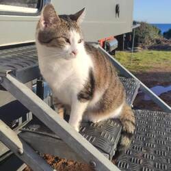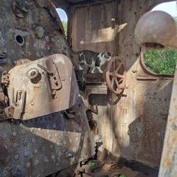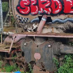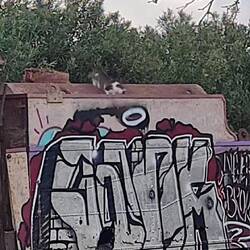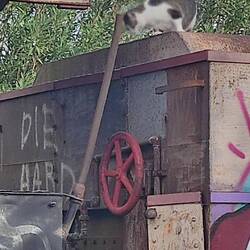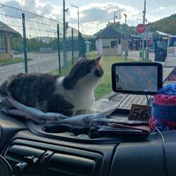 Nur ein paar km weiter auf der Suche nach der Sonne ☀️. Mietzi ist nun Lokführer und Speedy parkt neben einem ehemaligen Kraftpaket 🤩👍🏻🇬🇷🍀