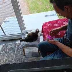 Mietzi hat sich heute von ihrem Freund verabschiedet. Wir haben ihm Futter gegeben,sie hat ihm eine Maus 🐭 da gelassen.