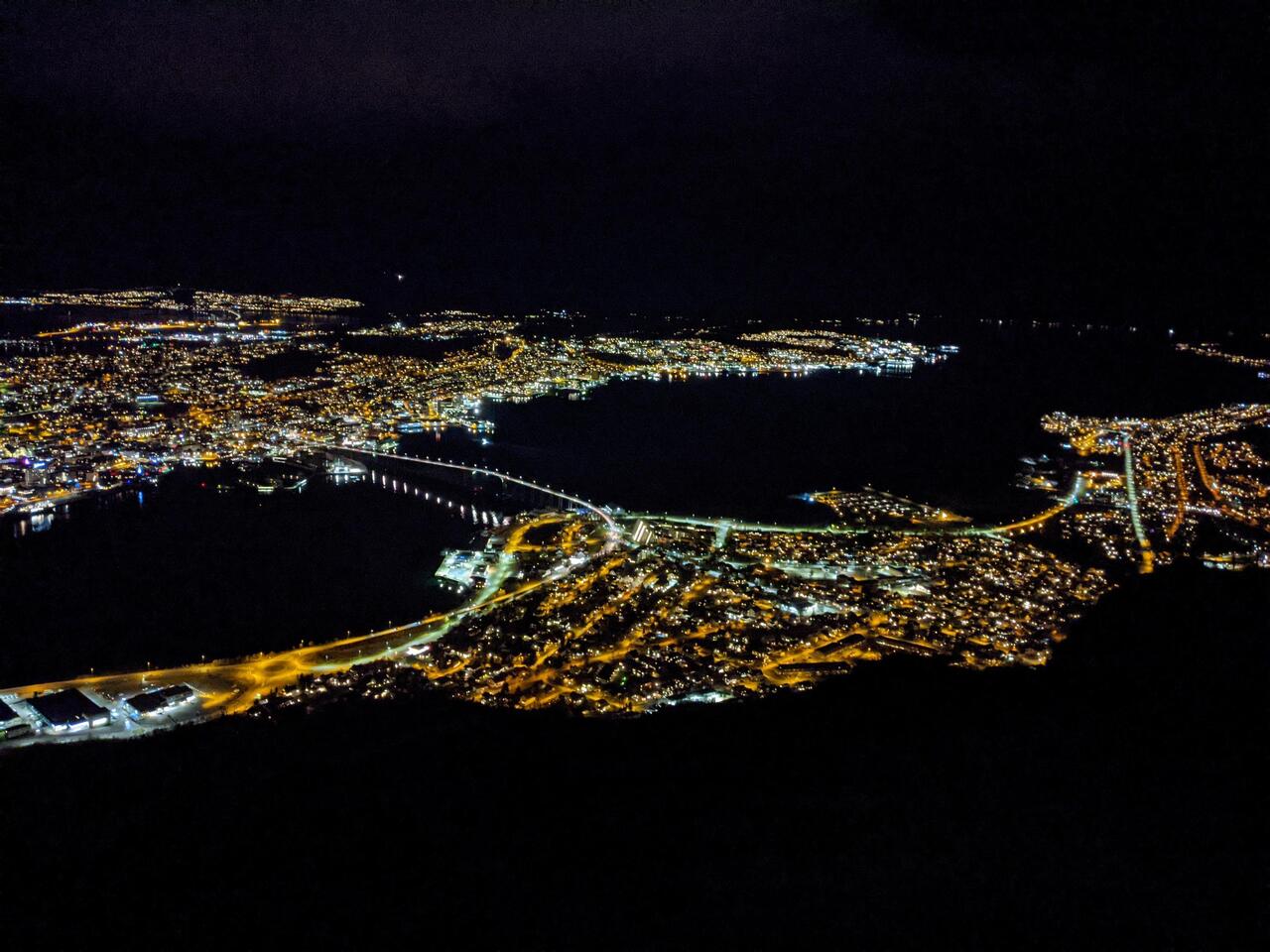 View over Tromso by night