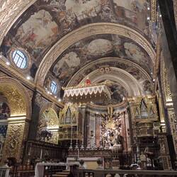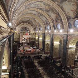 This Cathedral is dedicated to the Order of StJohn. It is quite an amazing Baroque spectacle. The floors are inlaid marble headstones for the Knights of the Order of St John, and are incredibly ornateLæs mere