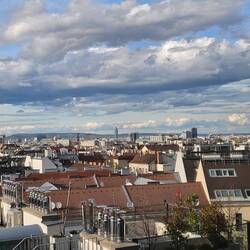Die Außenbezirke von Wien empfangen uns mit wunderschönen "Puffelwolken"