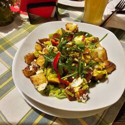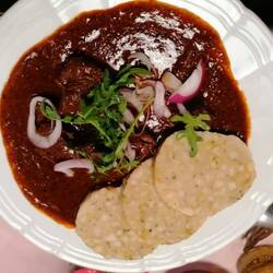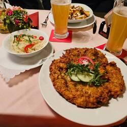 Tag - Suppe, geröstete Knödel, Wiener Schnitzel, Schnitzel mit ganz viel Zwiebeln