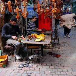Maaffa führt uns durch die Welt des Handwerks: Schweißer, Elektroniker, Schuhmacher, Lederer, Färber, Bäcker, Schneider, Köche und viele, viele mehr. Es wird geklopft, gebrannt, geschuftet, gehandelt und verkauft. Die Waren sind traumhaft schön – wir nehmen uns vor, morgen hier in aller Ruhe shoppen zu gehen.