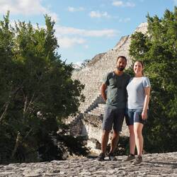Die Ausflüge nach Becan und Calakmul liessen uns dann die Tulum-Ruinen schnell vergessen. Riesige Pyramiden (über 40 Meter hoch) und Kultstätten aus dem 5. Jahrhundert liessen uns fast ein bisschen in Ehrfurcht erstarren. Und haben Etienne's Höhenangst bestätigt! Aber was macht man für ein gutes Foto und gute Aussicht nicht alles..😅