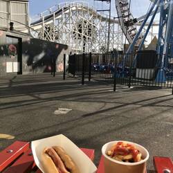 Wir sind Achterbahn gefahren und haben abends noch da gegessen, bevor wir wieder zum Hostel gefahren sind ☺️