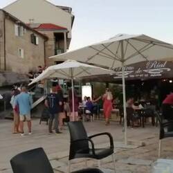 I order Albarino, the local white wine which has become my tipple of late. The waitress, when she brings it, takes a wobble and spills it all over Colm- he is drenched in it. Not to worry, the boat is only 5 minutes away so he and Ruby dash back for a hose down and change of clothes while I get served another glass. The benefits of being at docked at a marina.