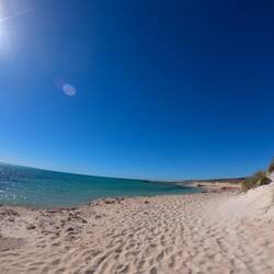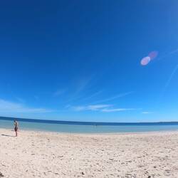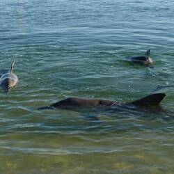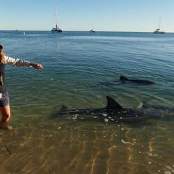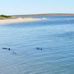 In Monkey Mia kann man wilde Delfine im Meer direkt vom Strand aus sehen - am frühen Morgen kommen ca. 10 Delfine immer an diesen Strand.