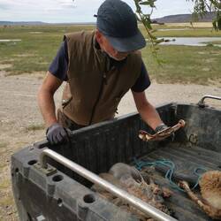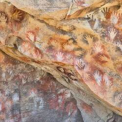 Wir verlassen die Estancia und überqueren den Rio Chico und fahren wieder in Richtung Norden. 120km südlich von Perito Moreno liegt die Cueva de las Manos ( Höhle der Hände).