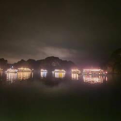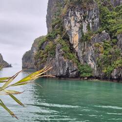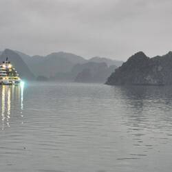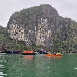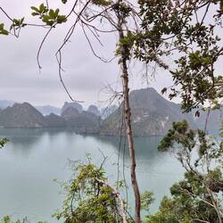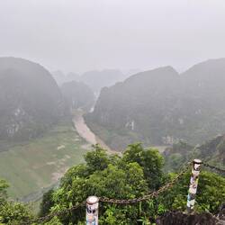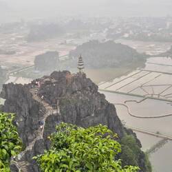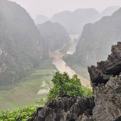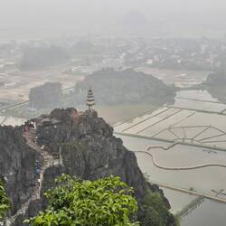 Heute morgen gings im Nebel wieder los zu einem Aussichtsberg in der trockenen Ha Long Bucht.