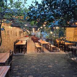 Nach einem kleinen Abendspaziergang machen es Uhr s in einem kleinen Restaurant außerhalb des Trubels gemütlich.