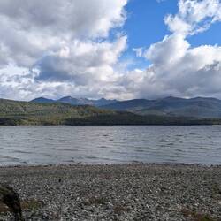 C'est l'heure de descendre, le temps est gris et les jambes fatiguées. On repasse dans la forêt, longe le lac Manapouri, croise des randonneurs qui débutent leur ascension et on observe d'en bas ceLæs mere
