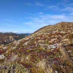 Nous sommes donc reparti selon le plan longer la crête qui part vers l'ouest, elle se transforme en plateau avec de jolies couleurs des fleurs avant de redescendre dans la forêt.