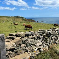Today was easier hiking overall but hotter- Sun all day up to 68 degrees. I stopped at Ballowall Barrow, ancient burial chamber from 1700BC! I hiked 9.3 miles with 1263 elevation gain and with newLeia mais